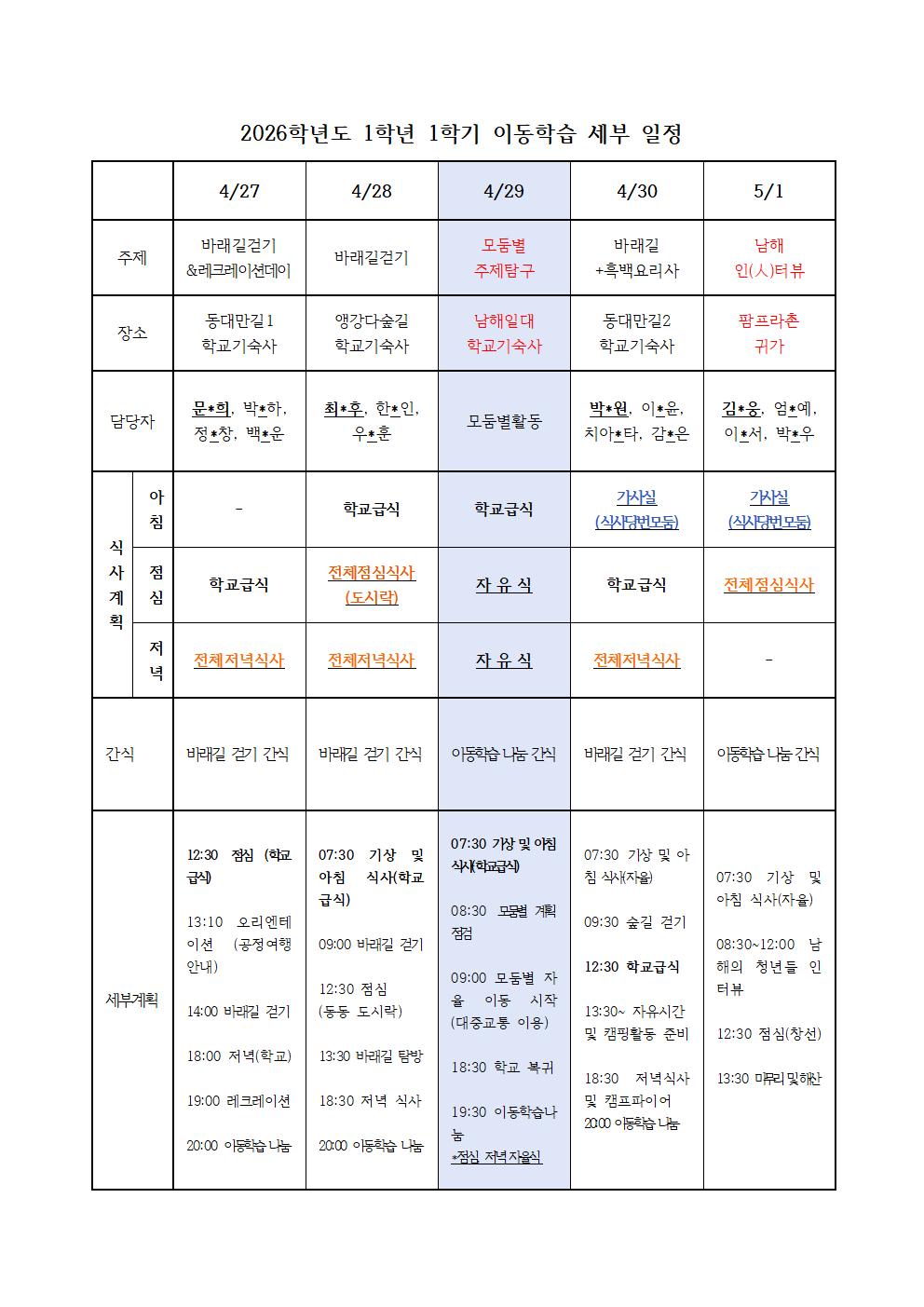 2026. 1학년 1학기 이동학습 안내 가정통신문